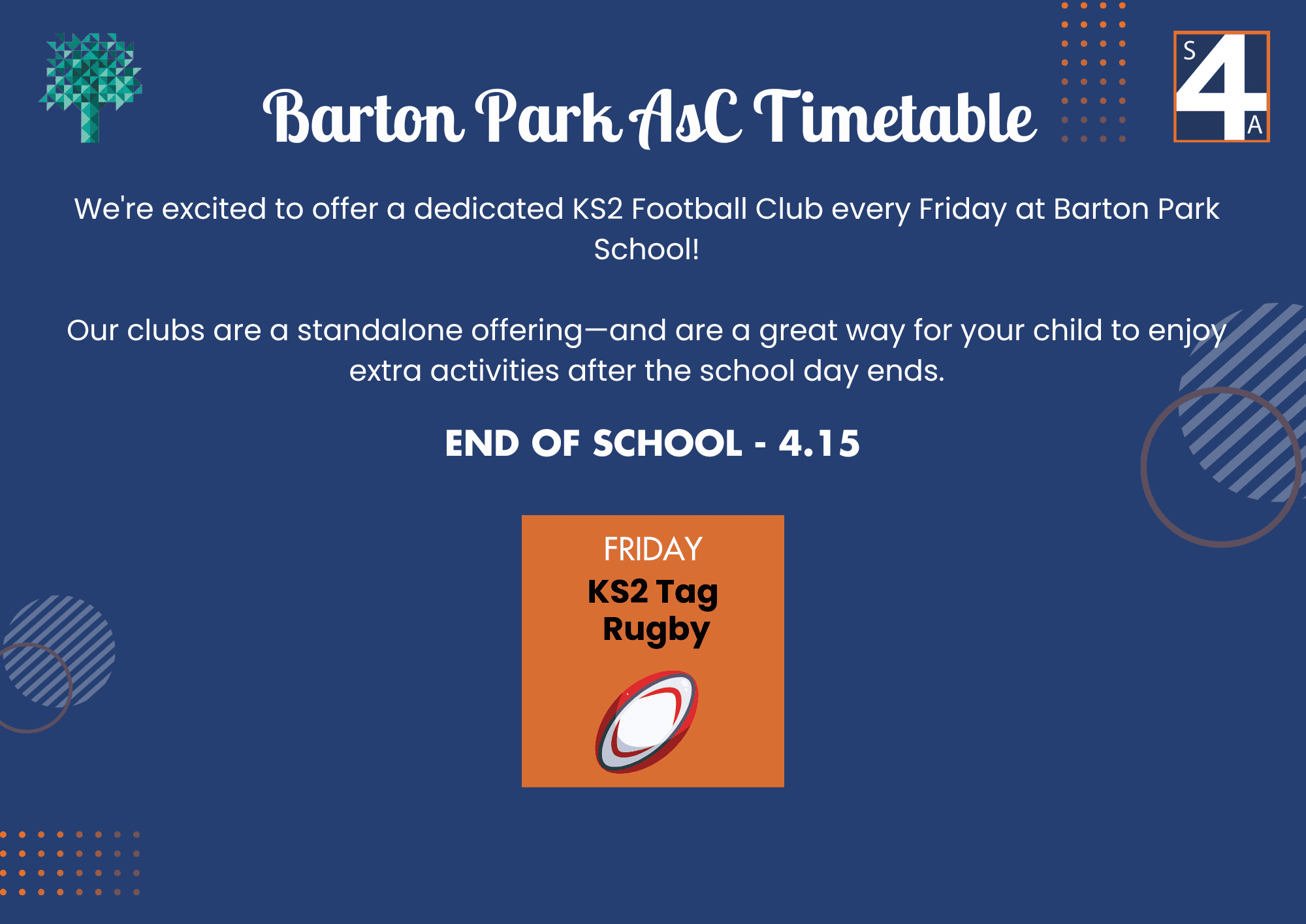 We are delighted to announce a new club coming to Barton Park after the October half term, Please see the timetable on the next tab.