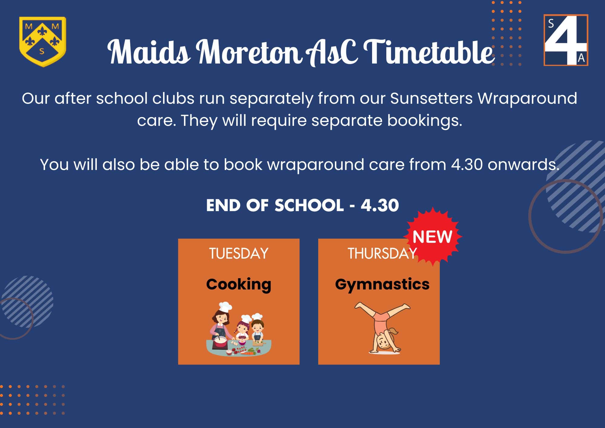 Enjoy cooking up a storm in the kitchen with Mrs Gibbs at Maids Moreton’s Cooking Club and brand new Gymnastics Club with Luke!
