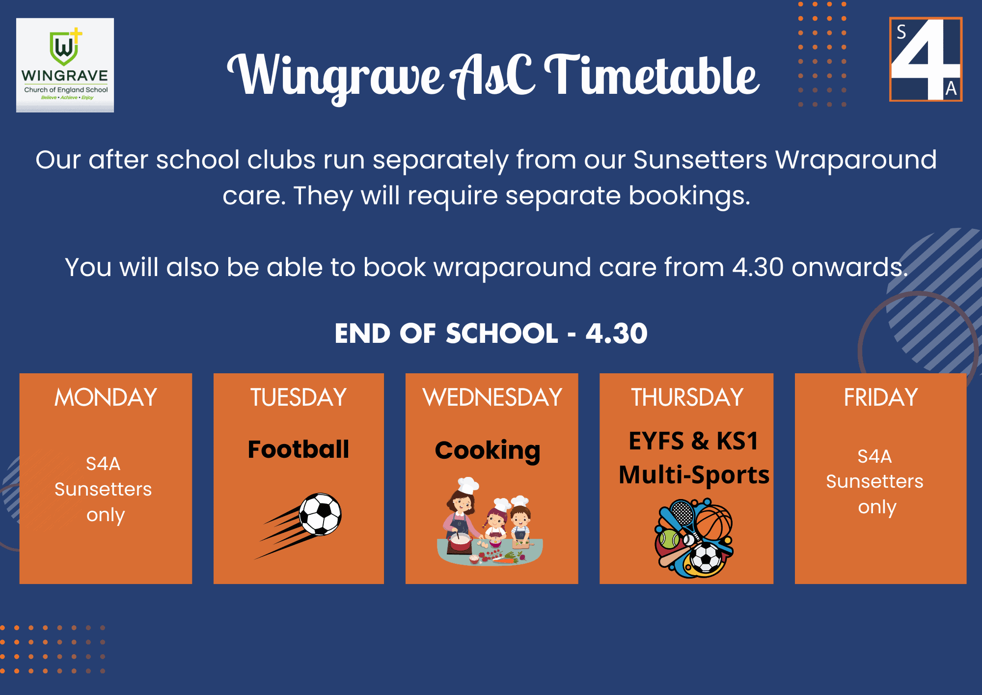 If your child wishes to attend an After-School Club, please scroll to the booking section for those programs. Wraparound Care bookings do not include access to these clubs.